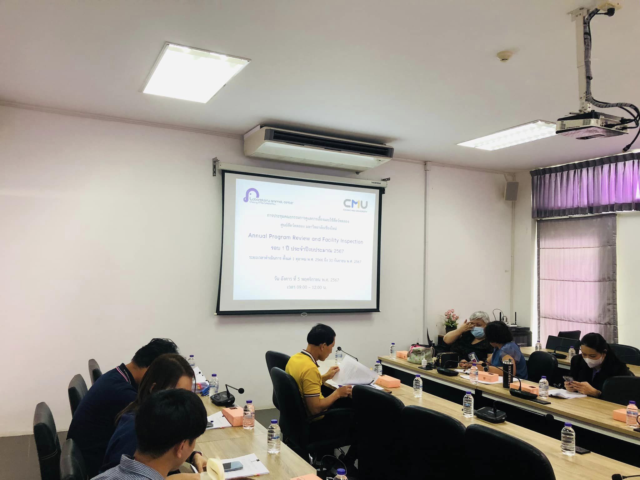 วันที่ 5 พฤศจิกายน 2567 คณะกรรมการกำกับดูแลการเลี้ยงและใช้สัตว์ทดลอง ศูนย์สัตว์ทดลอง สำนักงานบริหารงานวิจัย มหาวิทยาลัยเชียงใหม่ ได้ดำเนินการทบทวนโปรแกรมและตรวจเยี่ยมสถานที่เลี้ยงและใช้สัตว์ทดลองในรอบ 1 ปี ประจำปีงบประมาณ 2567 ณ ห้องประชุม 2 อาคารศูนย์สัตว์ทดลอง